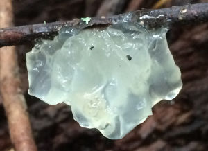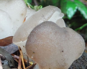 - Description: "This jelly fungus grows mostly on wood (either live or dead), often in broadleaf tree groves or on fir trees. The fruiting body is semi-translucent, brown, cup or ear shaped, and rubbery in texture (except when dry, in which case it turns quite hard)." [MM Hobbs]